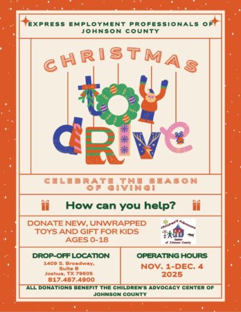 This Christmas, you can make the season brighter for a child in need. Express Employment Professionals of Johnson County is collecting new, unwrapped toys and gifts for kids ages 0–18 through December 4th. All proceeds benefit Children’s Advocacy Center of Johnson County. Find drop-off details on the flyer below.