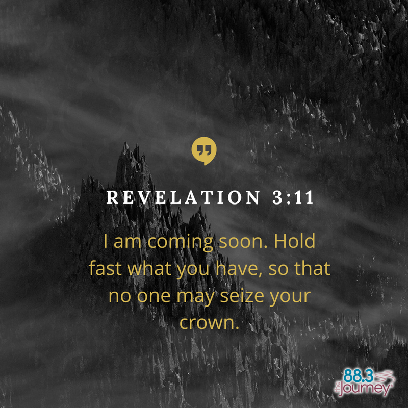 Revelation 3:11 I am coming soon. Hold fast what you have, so that no one may seize your crown.