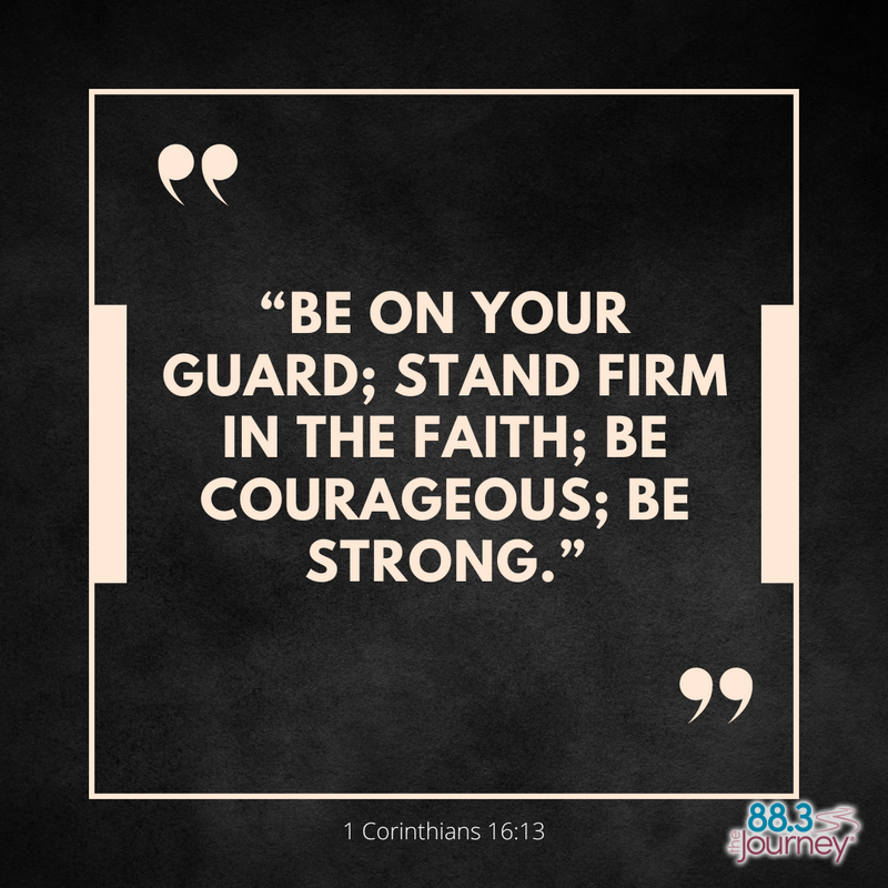 1 Corinthians 16:13 Be on your guard; stand firm in the faith; be courageous; be strong.