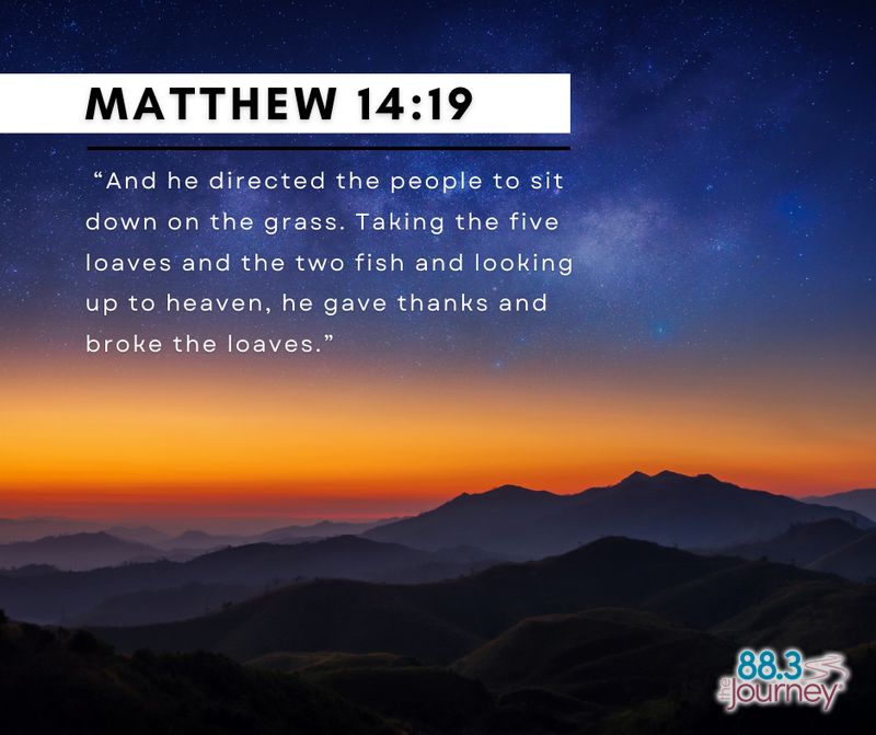 Matthew 14:19 And He directed the people to sit down on the grass. Taking the five loaves and the