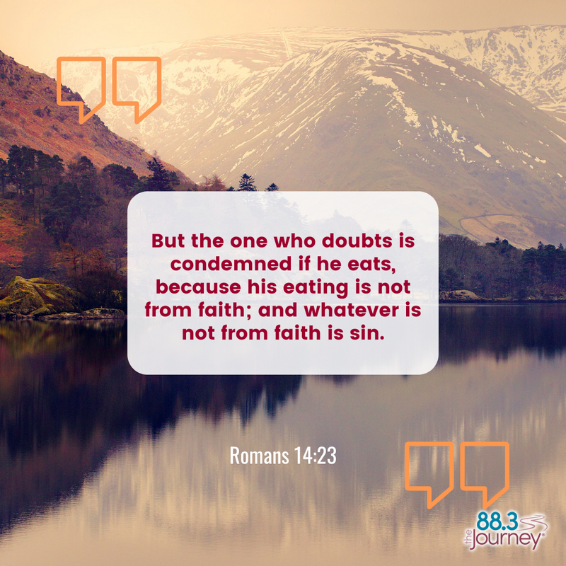 Romans 14:23 But the one who doubts is condemned if he eats, because his eating is not from faith;