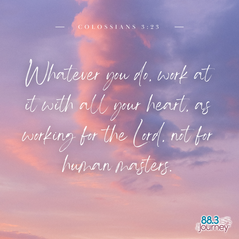 Colossians 3:23 Whatever you do, work at it with all your heart, as working for the Lord, not for